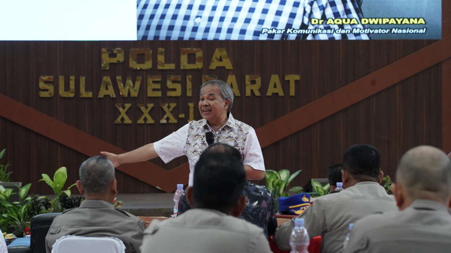 Dalam sambutannya, Kapolda Sulbar menyampaikan apresiasi atas kehadiran Dr. Aqua. “Kami berharap semangat yang ditularkan Pak Aqua menjadi energi positif q seluruh personel dalam menjalankan tugas mulia sebagai pelindung, pengayom, dan pelayan masyarakat,” ujarnya.