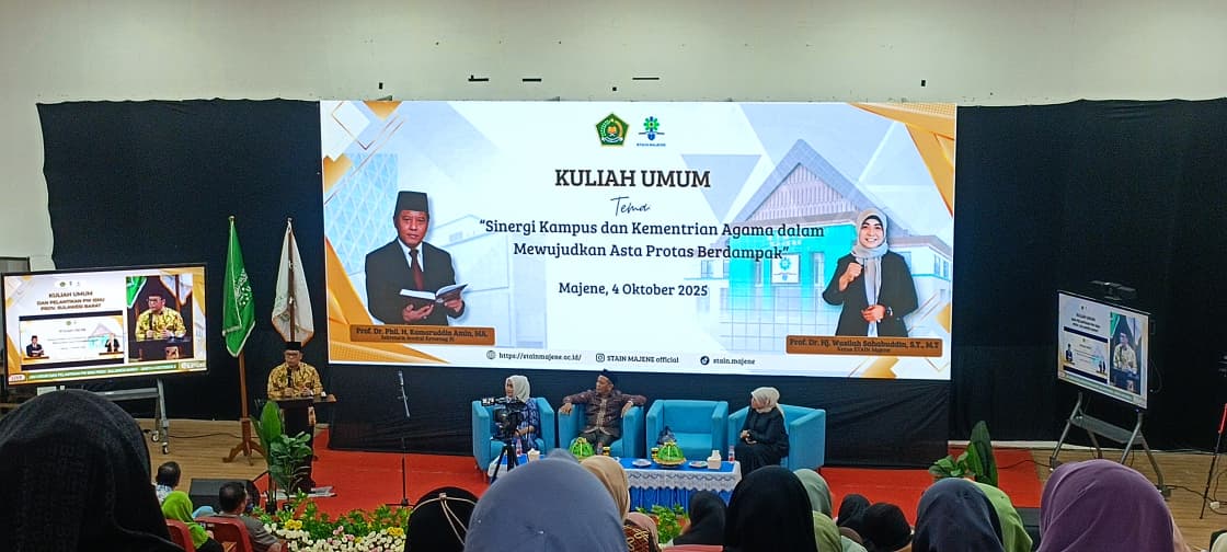 pesisirmandar.com, Majene — Sekolah Tinggi Agama Islam Negeri (STAIN) Majene sukses menyelenggarakan kuliah umum bertema “Sinergi Kampus dan Kementerian Agama dalam Mewujudkan Asta Protas Berdampak” pada Sabtu,(4/10/2025).